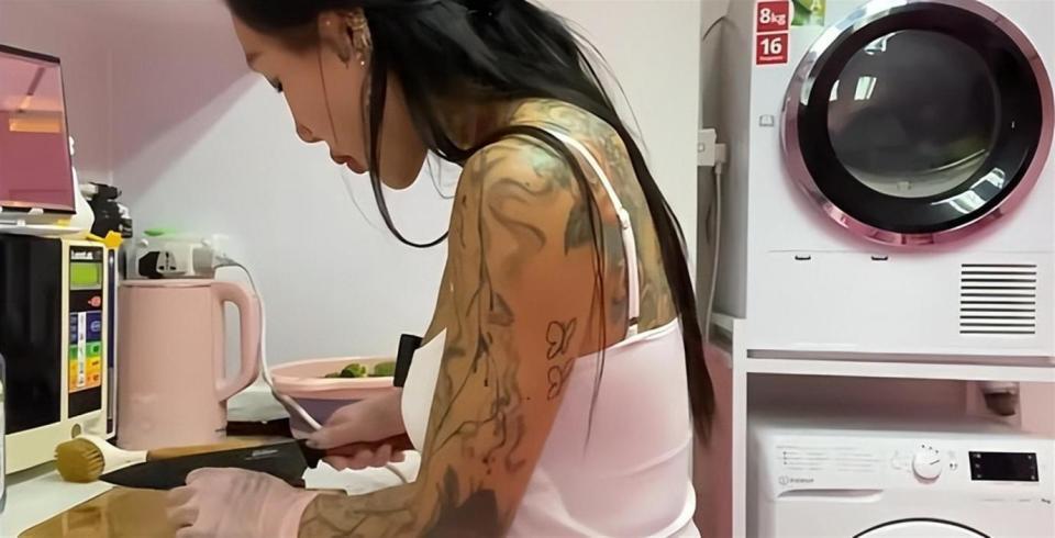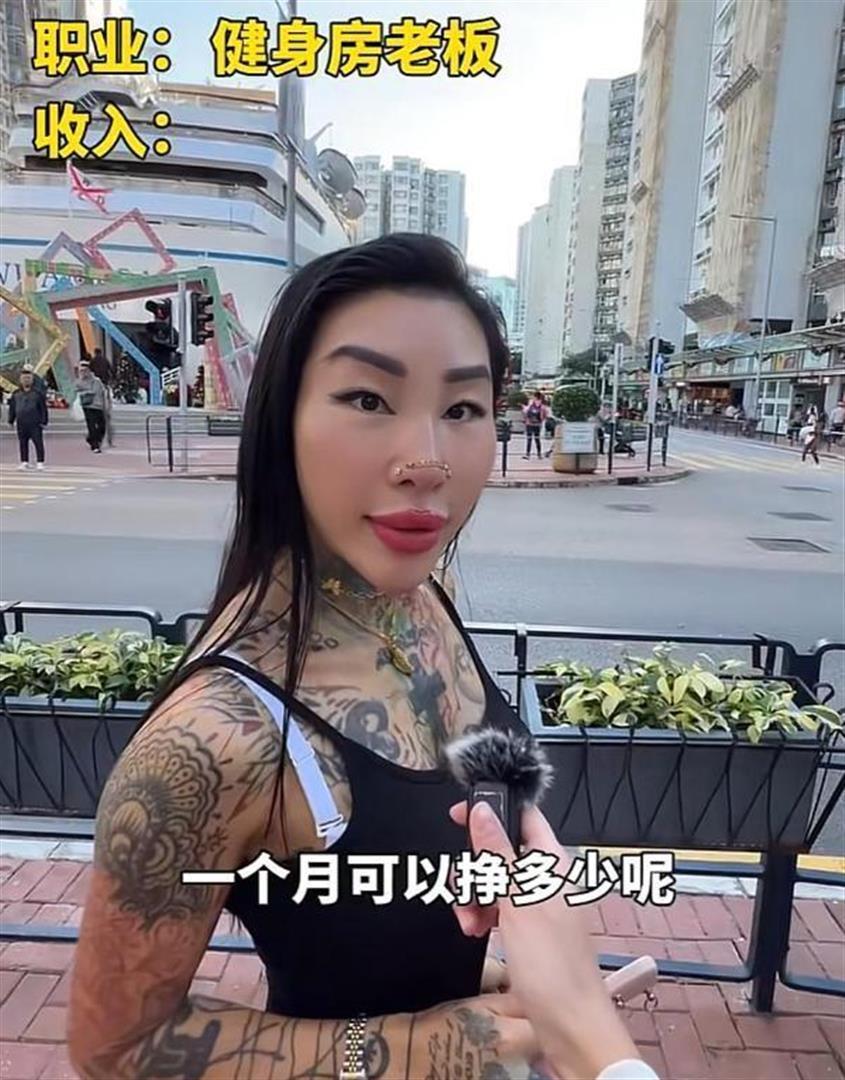 去年4月她在抖音开了账号,分享健身日常,那满身纹身在健身房太扎眼,一下就火了。 借着热度她在香港开了家私人健身房亲自带课,凭着专业底子和多年经验,现在每月还能赚4万港币,够自己花了 。